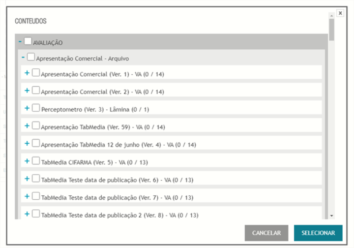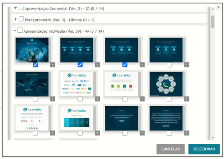 Ao selecionar os filtros de Apresentações e Especialidades, é necessário apontar qual o arquivo/versão que deseja consultar utilizando o filtro de slides: