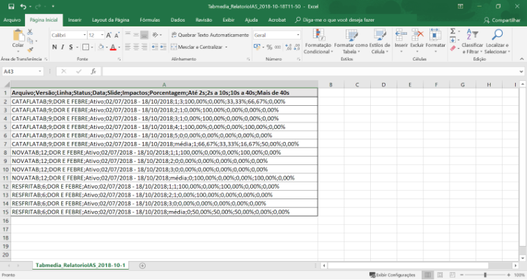 No CSV, você visualiza em uma planilha Excel os seguintes dados: